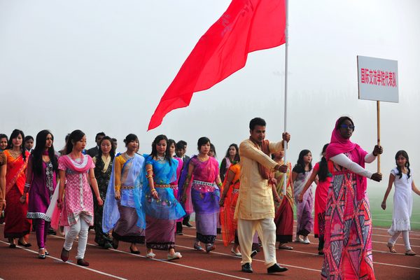 浮烟山校区体育场上,参赛代表队英姿飒爽地列队出场,赢得了阵阵欢呼。