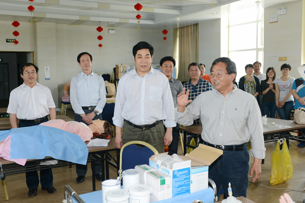 5月15日下午,学校党委副书记、纪委书记秦玉明代表学校党委来到临床技能训练室,为参赛队员壮行。副校长、附院党委书记井西学及教务处、医院管理处和附属医院领导,一起陪同看望参赛出征的学生。
