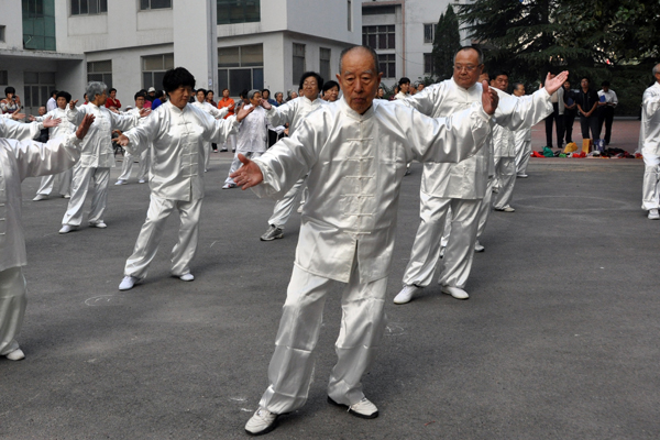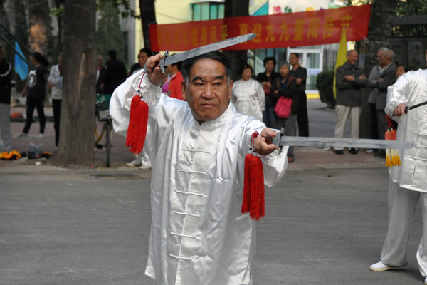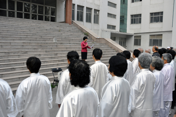 太极拳、太极剑、太极扇等太极系列项目表演拉开了老年运动会的序幕,40余名老同志身着太极服,精神抖擞、身姿矫健,队伍中包括80岁以上高龄的老教授有刘思奇、粱坤义、范瑞芳、沈禄康、张玉杰等,他们潇洒自如的动作博得观众们的阵阵掌声