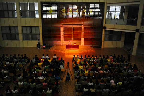 10月12日晚6:30,在教学楼F区潍医大讲堂内,500多名老师和学生济济一堂,聆听南开大学文学院博士生导师李新宇教授的讲座《今日中国的艺术与人文》。