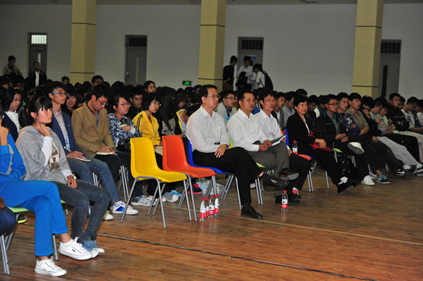 讲座由宣传部长刘汉波主持,副校长葛国文、校团委书记高洪海、宣传部副部长张伟与师生们一起聆听了讲座。