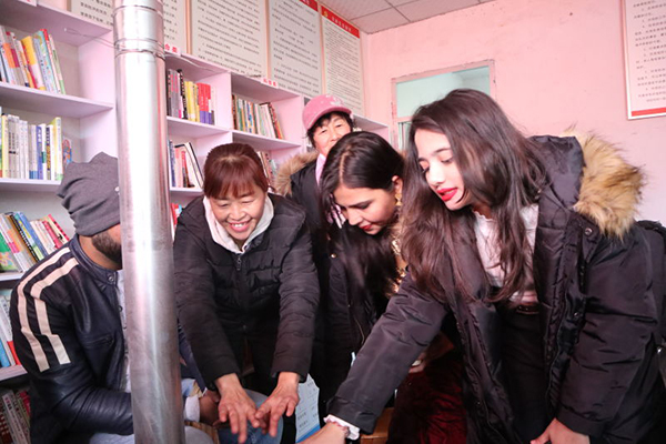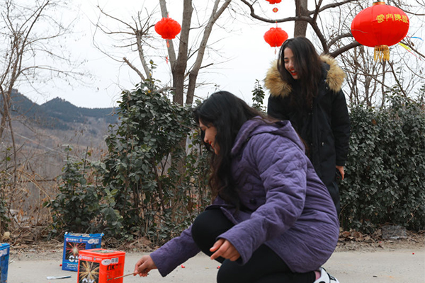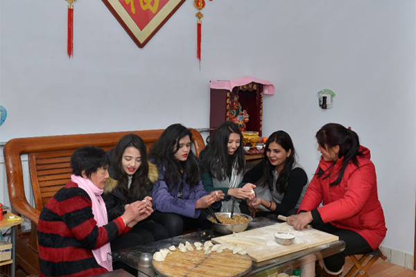 当天的气温很低,留学生们身着民族节日盛装在村广场为群众们表演了印度歌舞;他们走访孤寡老人,送上慰问品,与老人一起包饺子;与当地村民一起放鞭炮,敲锣打鼓。来自印度的Gauri(中文名高丽)已经来中国6年了,她说到:“真是太棒了,这是我第一次在中国的农村过年,我非常喜欢中国的年味儿。这里的人们太需要帮助了,我一定要学好医学,帮助更多的人。”