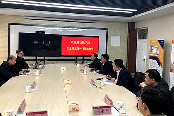 考察团一行与山东建筑大学信息化发展与研究中心、后勤处负责人进行了座谈交流。座谈会上,山东建筑大学后勤处副处长韩连顺介绍了学校基本情况,并就后勤物业、饮食管理等方面进行经验交流。信息化发展与研究中心王兆文主任做了题为《数据智能、价值交付—以互联网思维提升信息化工作价值的思考与实践》的交流报告,分享了数据治理、网上业务大厅、移动办公等方面的建设经验与取得的成效。