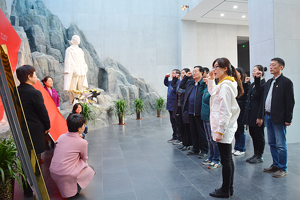 参观结束,全体人员在陈少敏塑像前,举起右手庄严宣誓,重温入党誓词。