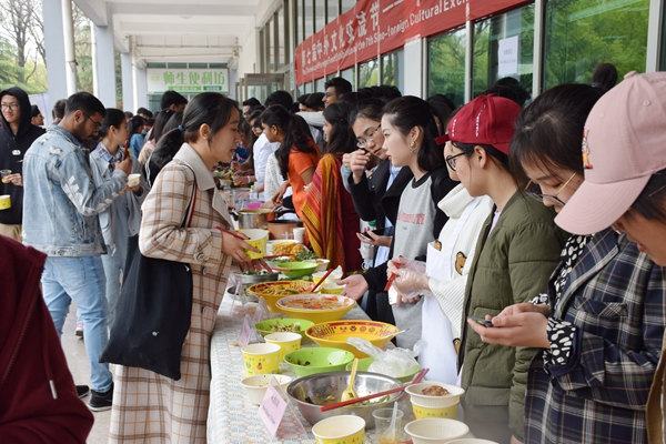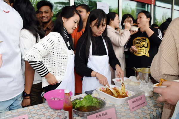 4月13日中午,以“食天下之美食,品文化之融合”为主题的第七届中外美食展在浮烟山校区杏林餐厅前举行。本次活动由国际教育学院主办,团委、临床医学院、康复医学院、药学院、公共卫生与管理学院、外语系和后勤管理处饮食中心等联合举办,来自15个国家的来华留学生和中国师生500多人参加了活动。