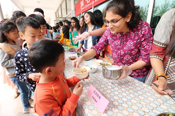 中外美食展展示了各国饮食文化和民族特色。中外学生亲自动手制作的特色菜品共计30道。“印式辣炒鸡肉”色香俱佳,“玫瑰奶球”软糯可口,“酸奶炸糕”松软清爽,“茄汁藕饼”鲜嫩多汁,“莫卧儿鸡肉烤饭”“腰果咖喱泥”“印式甜甜圈”等式样多味道美。中国学生制作的“乡子味道”“茄子肉灯笼”“临渊羡鱼”等也都受到师生喜爱。