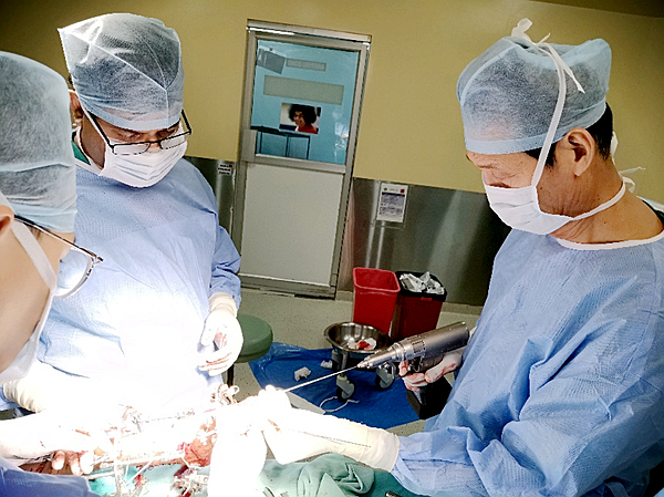 说干就干,秦泗河教授跟臧建成博士,带领一组印度医生顺利的消毒、铺单开始手术。我和Giri医生一起,在秦泗河主任的指导下开始另一台手术。手术是现场直播,学员在教室现场提问,秦泗河教授在手术室现场解答。秦泗河教授的下肢矫形手术方法、Ilizarov技术的穿针固定技巧,超凡的手术技能,使得配台的印度骨科医生及会场代表,第一次领略了中国骨科专家的手术神韵。