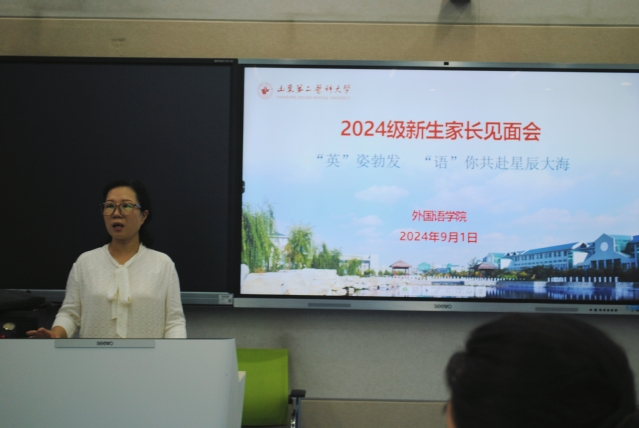 家校携手,形成教育合力。新生入学当天,家长入校,学院召开“‘英’勃发,‘语’你共赴星辰大海 ”新生家长见面会。学院党总支书记张立、院长付有龙以及各教研室主任共同参加新生家长见面会。见面会上不仅介绍了学校和学院的基本情况、办学历史、学科发展,专业建设、师资力量、教学设施以及近年来取得的成就,并且从英语专业培养方案、师资队伍、人才培养、考研就业等方面展开介绍。此次见面会不仅加强了家校之间的沟通与合作,更为新生家长提供了宝贵的信息和支持,为家校合作共育、提升育人实效,护航新生成长与发展奠定了坚实基础。