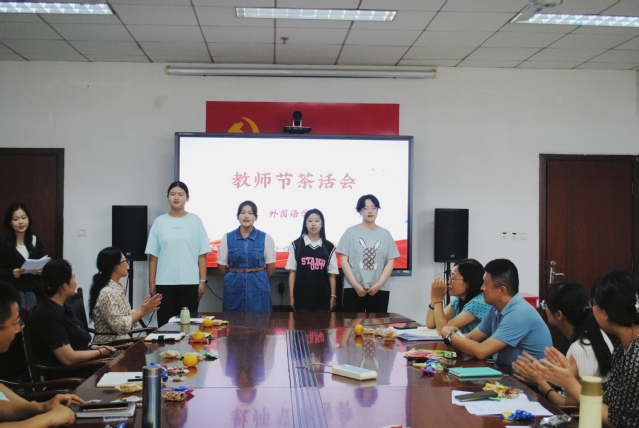 师生联合,师恩礼赞。在学院举行的“以文化人 以教立身”教师节茶话会上,新生们自编自演,用流利的英语深情朗诵《礼赞吾师》“Dear teacher, you are the lighthouse in the ocean of knowledge, shining brightly and guiding our way……”,生动地表达了对老师们的敬爱之情。随后,女生小合唱《纪念》,悠扬的旋律传递着对老师们深深的感恩与祝福。这场教师节茶话会,是师恩的礼赞,也是外国语学院师生携手共进的新起点。
