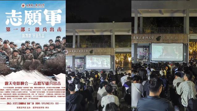 为进一步弘扬革命情怀,激发爱国主义精神,9月28日,由学校宣传部主办、医学检验学院承办的露天观影活动在学校文化主题邮局门前广场举行。