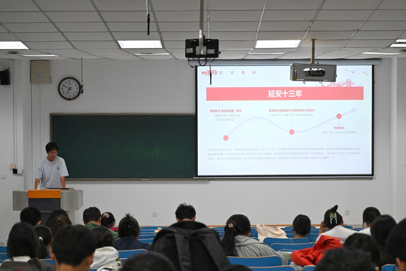 主题团课弘扬延安精神。团课以演讲的形式,再现了“一半书香一半眠”“火炉旁的棉鞋”“跨越国界的医疗使者:马德海”等发生在延安的经典故事。参会人员集体观看开国大典影像资料,共同追忆新中国成立之时的光辉与荣耀。
