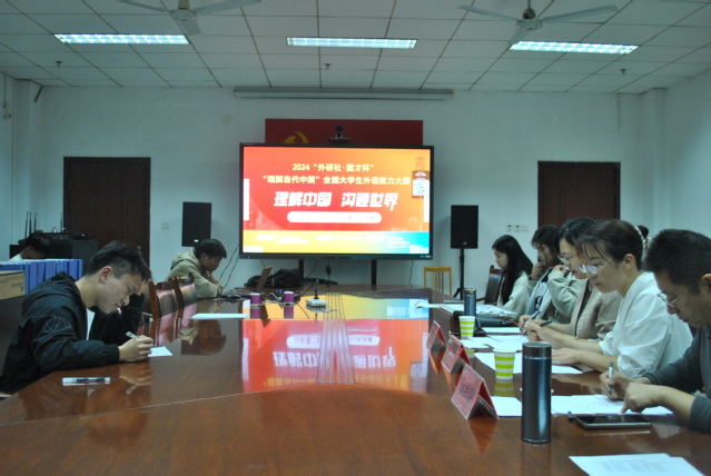 10月11日晚, 2024年“外研社·国才杯”“理解当代中国”全国大学生外语能力大赛英语口译赛项校内选拔赛在外国语学院会议室成功举办。