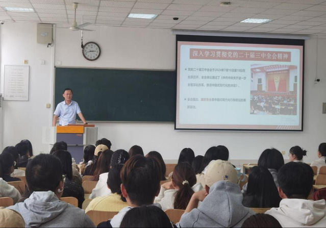 为深入学习贯彻党的二十届三中全会精神,引导2024级研究生新生坚决把思想和行动统一到全会精神上来,激励师生凝聚改革共识、砥砺奋进力量,近日,护理学院党总支书记马健平为学院全体研究生新生进行党的二十届三中全会精神宣讲。