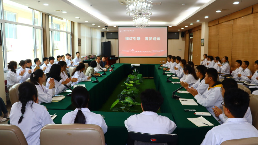在“院长与新生面对面”活动中,学院院长,潍坊市人民医院党委副书记、院长王红波从始建于1881年,文化底蕴深厚的百年老院的角度出发,介绍了第一附属医院的情况,着重介绍了始建于1951年昌潍医士学校的悠久历史和医院近期发展成果,与同学们展开互动交流。讲座引导新生树立良好的学习理念、确立远大志向和目标,鼓励大家不断提高自己,成为一名自信、专业的医学人才,成为有责任、有担当、人民满意的健康“守门人”。