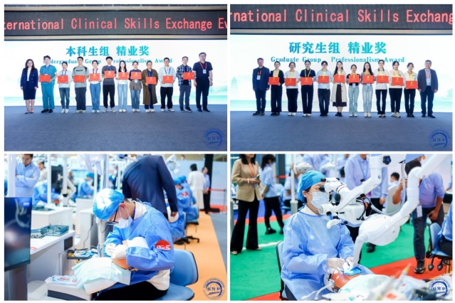 本次比赛聚焦口腔医学教育,由空军军医大学第三附属医院主办,共有34所国内外知名院校参与竞技。分为本科生组与研究生组两个组别,分别有“心肺复苏术+AED”“全瓷冠牙体预备”“橡皮障下二类洞制备”“口内缝合术”和“临床思辨”“橡皮障下显微根管治疗”“下颌阻生齿拔除术”等比赛项目。同学们在冀洪海、王凡涛、曲会娟3名带队老师的指导下,冷静思考,沉着应对,最终荣获本科生组和研究生组“精业奖”。