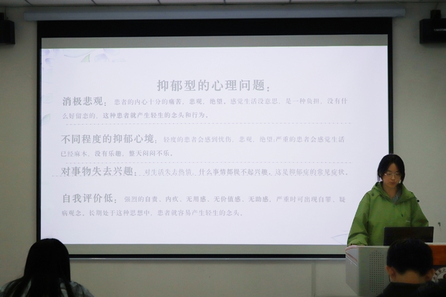 此次活动旨在宣传心理健康知识,学习如何识别和处理心理问题。比赛现场,参赛同学借助互动问答、情景模拟等形式,以生动的语言表达对心理健康的理解与重视。演讲者围绕大学生心理健康教育的重要性和紧迫性展开论述,倡导将心理健康教育融入日常生活,积极开展相关课程及活动。在互动环节,有同学提出初入大学时面临的压力与困惑等问题,演讲者通过对不同心理健康问题的深入探究,提出“自我暗示”“规律生活”“适当放松”等多种方法,鼓励更多同学以积极的心态面对挫折,从而实现自我成长。