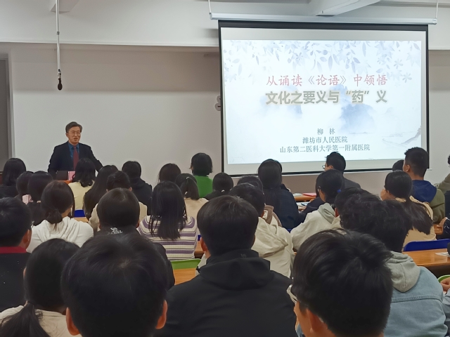 10月28日,第一附属医院主任医师柳林来校作学术讲座,学校党委委员、宣传部(教师工作部)部长田玉胜出席活动并为柳林教授颁发孔子学堂美育指导教师聘书。柳林做了题为“从诵读《论语》中领悟 文化之要义与‘药’义”的学术讲座。第一临床医学院党委副书记朱红主持活动。
