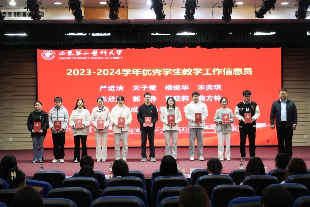 会上宣读了《关于表彰2023-2024学年优秀学生教学工作信息员的决定》和《关于聘任2024-2025学年学生教学工作信息员的通知》。学生工作处处长尹世峰为33名优秀学生教学工作信息员颁发了荣誉证书,教务处副处长张光成为16个专业学院新聘任的学生教学工作信息员代表颁发了聘书。临床医学院2022级周锦雯同学作为优秀学生教学工作信息员代表进行了发言。教学质量监控与评估处工作人员对新聘任的信息员的同学进行了工作培训,并对本学期教学工作信息员的重点工作进行了安排。