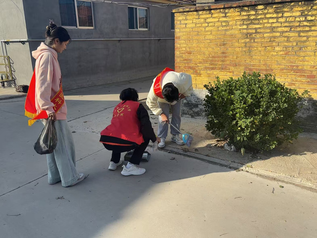 到达志愿服务点后,同学们进行分工后投入到各自的活动当中。这次志愿活动打扫卫生活动的区域主要是乡村的绿化带及杂草丛生的卫生死角,志愿者们捡拾路边的垃圾,清扫落叶,清理绿化带中的杂草。活动期间,志愿者们发扬不怕脏、不怕累的精神,手持扫帚、垃圾袋等专业工具,齐心协力清理卫生死角。经过三个小时的辛勤劳动,最终使街道焕然一新。