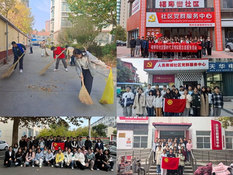学生志愿者们分别前往清平社区、乐埠山符山社区、北宫社区、福寿街社区、人民商城社区等地,在社区工作人员的指导下,明确分工,分组作业,各司其职,向社区居民宣传简单急救知识,讲解居民医保相关问题;排查警示牌和防护带完整情况,对存在安全隐患、缺失损毁的装置进行及时更换;为社区内小学生进行课后辅导,耐心解答小朋友学习疑问,提高学习兴趣;清扫社区街道、绿化带和休闲区域,扫除每一处灰尘、垃圾及落叶。