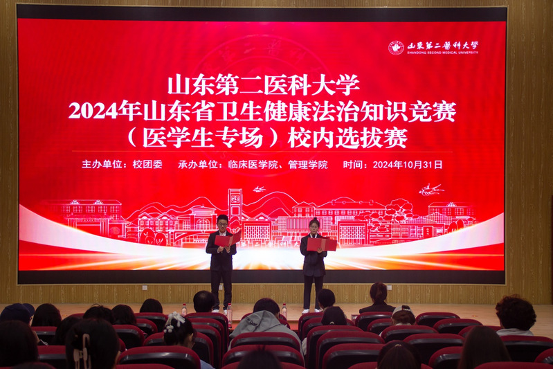 为提升学生的法治素养与专业技能,近日,临床医学院联合管理学院举办2024年山东省卫生健康法治知识竞赛(医学生专场)校内选拔赛。