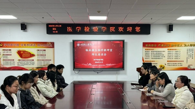 近日,医学检验学院召开《临床微生物学与检验》课程师生座谈会,临床微生物教研室全体课程授课教师及2023级医学检验技术学生代表共同参与。