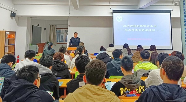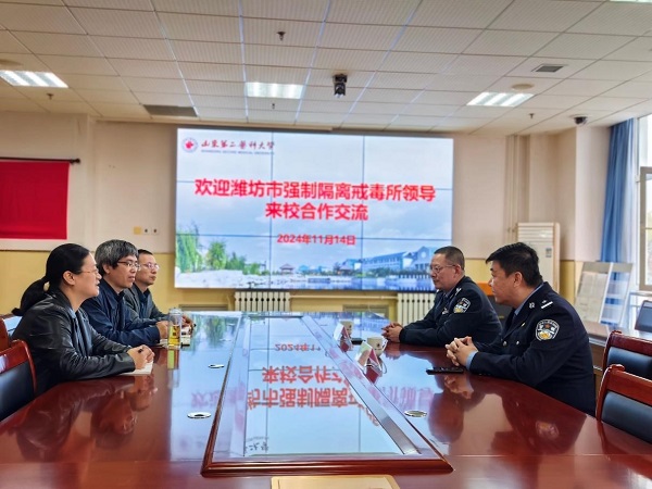 讲座结束后,两位警官参观了学院的实验室,并与学院领导老师就科研合作、实践服务、教育宣讲等内容进行了深入的座谈交流。双方表示,潍坊市强制隔离戒毒所作为学院的实践基地,今后双方将加强合作,扎实推进共建工作,为促进学生身心健康发展,构建和谐稳定的社会环境贡献力量。