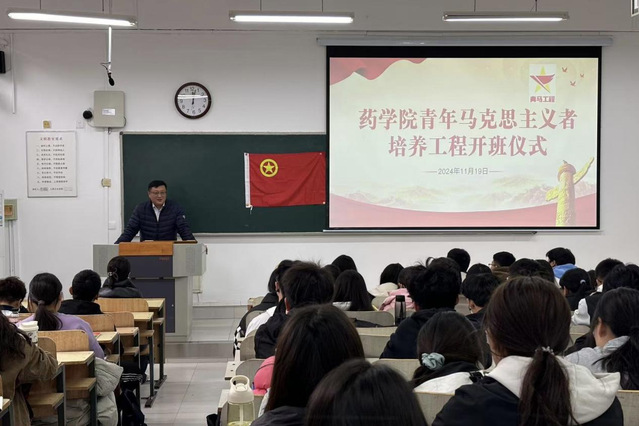 为加强对青年学生的思想政治引领,药学院于11月19日至11月22日举办2024年青马工程暨下半年入团积极分子培训开班仪式。药学院全体辅导员、2024级各班团支委及2024年下学期发展入团积极分子参加活动。