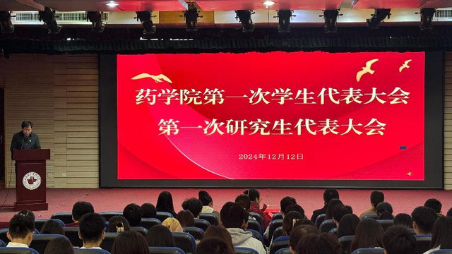 12月12日,药学院第一次学生代表大会暨第一次研究生代表大会在图书馆演播厅召开,药学院党委书记刘宪亮、副书记徐帆、全体辅导员、本科生学生代表和研究生学生代表共同参加此次会议。