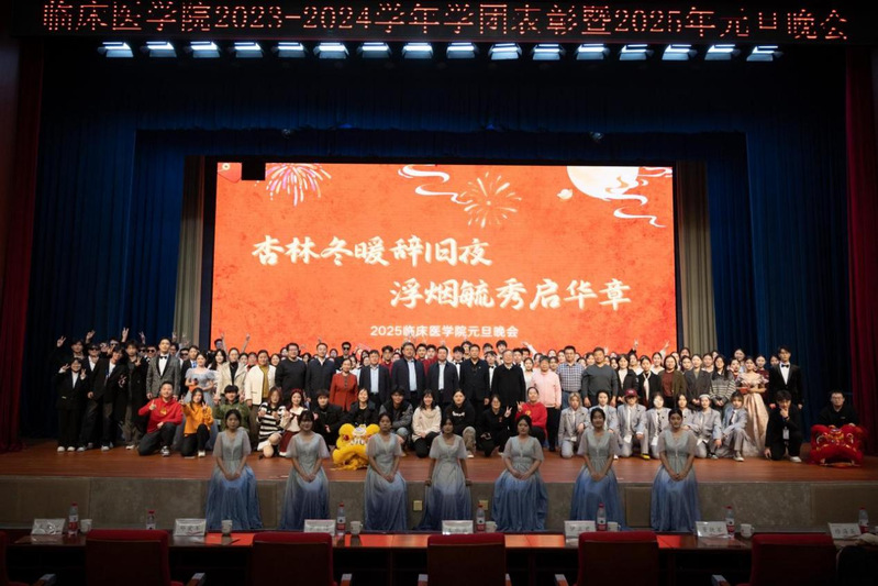 表彰盛典,庄严肃穆,往昔佳绩历历在目;元旦欢歌,绚丽缤纷,明日华章熠熠生辉。辞暮尔尔,且观智和绽芳华;烟火年年,静候杏林传佳音。临床医学院全体师生将恒持踔厉奋发之态,勇迎挑战,锐意创新,砥砺前行,为学校的高质量内涵式发展倾智竭力,绘就全新画卷!