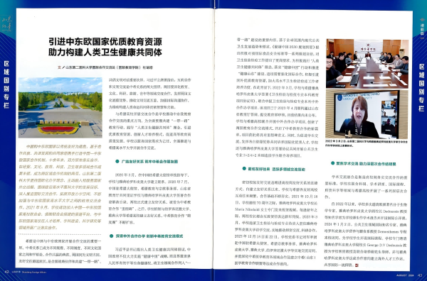 近日,由中共山东省委外事工作委员会办公室、山东省人民政府外事办公室主办的《山东外事》分别以《相知无远近,万里尚为邻—我与匈牙利、塞尔维亚的缘分》[2024年第3期(总第188期)] 、《引进中东欧国家优质教育资源 助力构建人类卫生健康共同体》[2024年第4期(总第189期)] 为题,连续报道bw与中东欧国家开展合作交流情况。