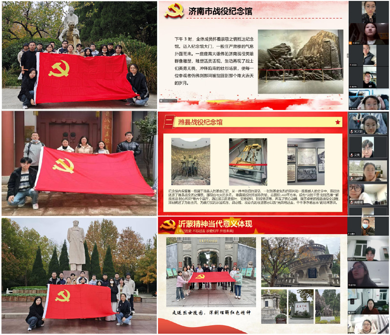 近三个月以来,潍坊、济南、临沂地区的研究生党员以主题党日为契机,先后组织当地团员、群众共同赴潍县战役纪念馆、济南市战役纪念馆、华东烈士陵园等地开展以“追溯历史长河,赓续红色血脉”为主题的党性实践。随后,接受现场教育的党员通过线上领学的方式向其他地区党员、团员和群众讲述所学所思所感。领学党员通过展示历史照片、革命文物等方式,展示了烽火连天的年代里革命先辈们为实现人民解放而不怕牺牲、英勇奋斗的革命事迹。研究生纷纷表示,每一次共同学习都是一次思想洗礼,坚定着大家的理想信念。今后将不断加强思想理论学习,增强实践锻炼,主动承担社会责任,为实现中华民族伟大复兴的中国梦贡献属于自己的力量。
