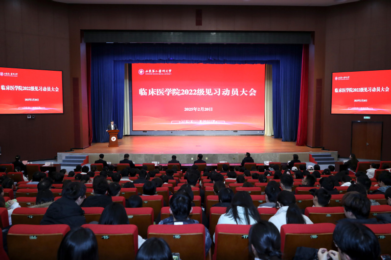近日,临床医学院在文体活动中心报告厅召开2022级临床见习动员大会。副校长、临床医学院(附属医院)党委书记王承高,学院(医院)党委副书记、院长邓爱军,正处级组织员徐海英,学院党政领导班子成员,教学部负责人、2022级学生工作办公室辅导员及全体学生参加,会议由学院党委副书记刘刚主持。