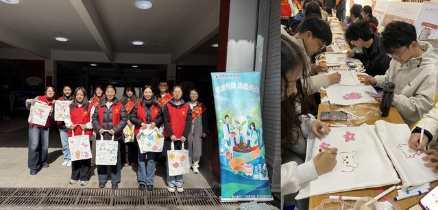 为增强全校师生环保意识,倡导师生树立绿色生活理念,3月12日,口腔医学院与医学检验学院开展“植此青绿,齿检共绘”植树节系列活动。同学们准备了植树环保知识题库,精心准备了科普视频,希望通过知识宣讲与创意活动相结合的形式,提高广大师生们对绿色环保的认知。活动中,参加的老师和同学们需要答对5道植树环保问题,领取自己的专属帆布袋到指定区域绘画,现场观看科普视频获得参与活动机会。绘画中,老师和同学们积极展示自己的才艺,用创意与双手,为环保布袋增添一抹独特的春天色彩。活动后,大家纷纷打卡合照、留下我与环保的约定,积极践行绿色环保理念。
