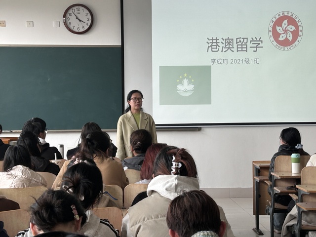本次宣讲会特别邀请了刚收到香港一所大学录取通知书的李成琦同学分享自己的经验,她向同学们介绍了选择港澳留学的注意事项。宣讲过程中,同学们积极互动,纷纷就港澳深造的招生政策、学费、申请时间节点、专业匹配度等问题踊跃提问。