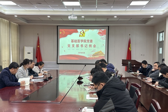 3月19日,基础医学院党委召开党支部书记例会,学院党委书记楚新艳主持会议,党委班子成员、全体党支部书记及委员参会。