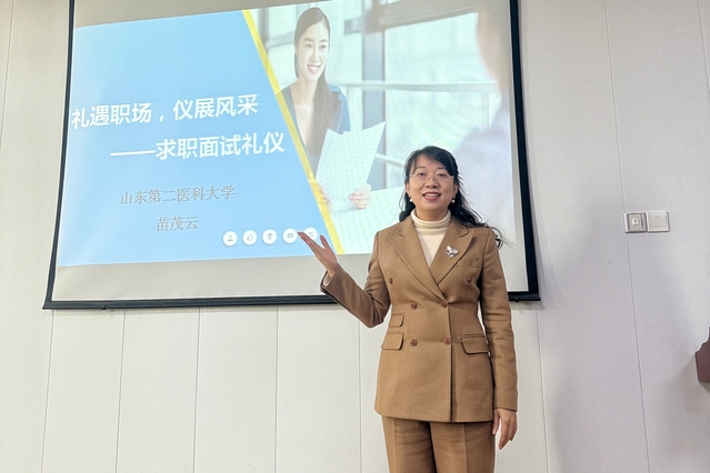 培训立足护理学科,从理论和专业层面剖析面试评价标准与梅拉宾法则的应用,结合护理职业形象,演示站姿、坐姿等仪态规范,通过模拟面试,全面讲解微笑、目光、语言等面试仪态礼仪,并提醒学生面试后总结经验、调整心态。指导学生收集目标院校专业信息,准备简历、自我介绍等材料,做好应考准备工作。
