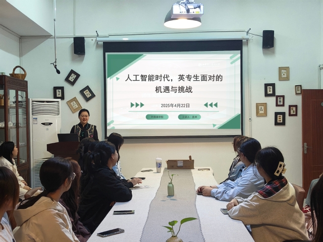 在“人工智能时代英专生面对的机遇与挑战”为主题的研讨活动中,大学英语第二教研室的老师结合当前人工智能技术的快速发展,分析了英语专业学生面临的行业变革,并勉励同学们要积极适应技术变革,将语言优势与AI技术相结合,既要掌握人工智能应用能力,又要坚守人文素养,开拓更广阔的职业路径。同学们积极参与交流,围绕“AI是否会取代人工翻译”“语言专业如何与科技融合”等话题展开激烈讨论。