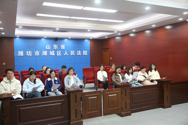 为深化法学专业实践教学,提升学生法律实务能力,推动校地协同育人,4月23日,管理学院2024级法学专业学生代表走进潍坊市潍城区人民法院,开展“检校共话法治路 青春筑梦实践行”实践教学观摩活动。