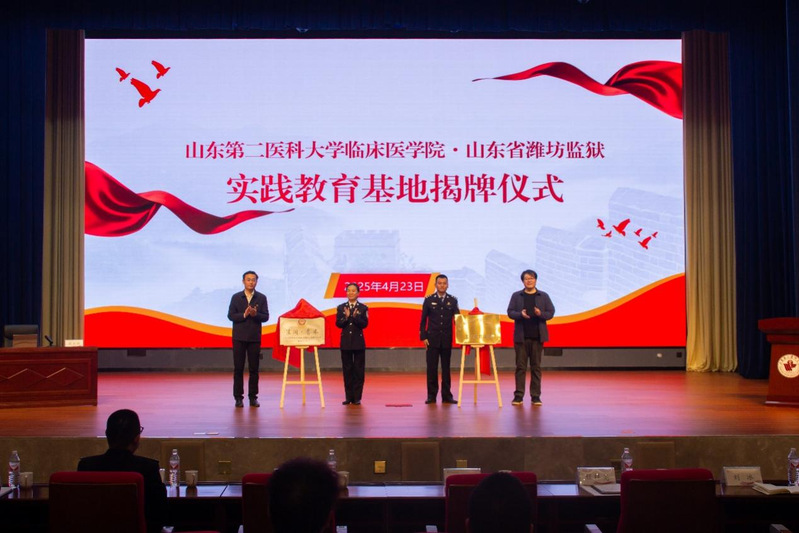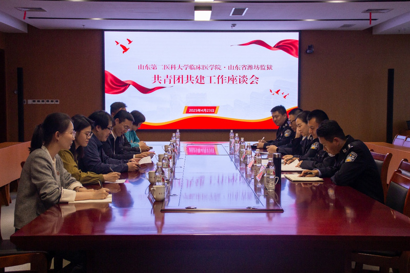 近日,临床医学院与山东省潍坊监狱联合开展共青团共建活动,双方以法治安全教育为核心,通过座谈交流、基地揭牌、专题普法等形式,推动共青团工作创新发展。山东省潍坊监狱党委副书记牟洪波、临床医学院党委副书记刘刚及双方团委代表、学生代表参加活动。