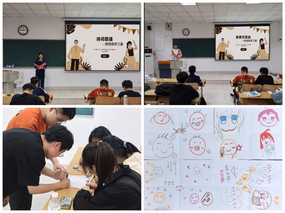 活动分为三个环节。诗词朗诵环节,同学们以声传情,深情演绎《你是人间的四月天》《微笑》等经典诗篇;主题绘画环节,同学们拿起画笔,用充满创意的画作将微笑的美好定格于画布之上;故事分享环节,同学们敞开心扉,讲述身边人用微笑带来温暖的动人故事。