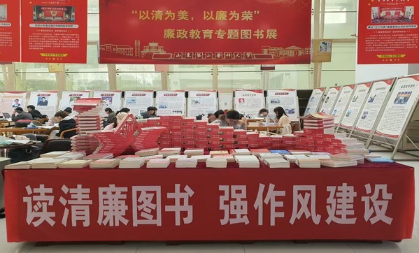 图书馆党总支紧紧围绕清廉学校建设,积极营造风清气正的校园环境,近日,在二楼大厅推出廉政教育主题图书展。