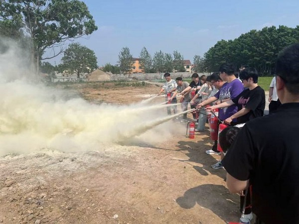本次培训活动采取理论知识培训和实战演练相结合的方式。在理论知识培训环节,刘汉亮为同学们进行消防知识讲解。他详细介绍了实验室及公共场所常见的消防安全隐患,重点讲解了灭火器的正确使用方法,即“提、拔、握、压”的操作要点,他还结合实际案例,说明了如何正确报警、在火场中安全疏散逃生的技巧。在实战演练时,同学们按照预定的疏散路线,弯腰低姿,有序地向安全区域疏散。整个疏散过程迅速且秩序井然,展现了良好的应急素养,达到了预期的演练效果。最后,师生们进行了灭火器实战演练。在专业人员的示范和指导下,同学们积极上手操作,进一步熟悉了灭火器的使用流程,增强了应对火灾的信心和能力。