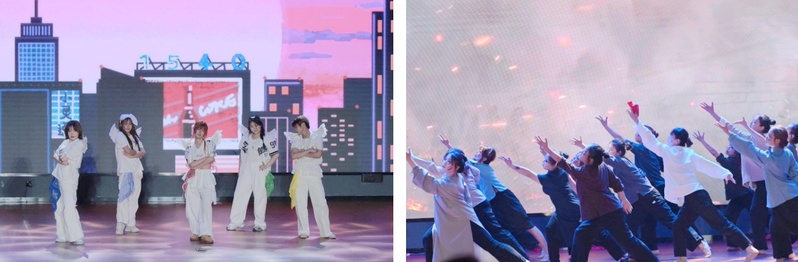 比赛共分单双舞和群舞两个赛道,14组选手齐聚舞台,用充满青春张力的舞台表演,诠释着舞蹈艺术的无限魅力。《红船》引领我们驶入波澜壮阔的红色岁月,《俏花旦》《石窟·日月》《成龙历险记》巧妙融合舞蹈与中华优秀传统文化,《花儿》《雨后》尽展中国舞的婀娜多姿和柔美韵味,《真挚》《破晓》《Antifragile》《孤注一掷》激荡着情感的回响与梦想的锋芒,《好戏开场》《Meow》《Shooting Star》《天赋异禀》迸发出青春的无尽活力与蓬勃朝气。潍坊学院音乐与舞蹈学院带来的开场舞《欢乐总动员》、国际教育学院国际学生合唱团演绎的《We Are The World》、大学生艺术团合唱队表演的歌曲串烧《天海唱相逢》将气氛一次次推向高潮,最终比赛在全体参演人员呈现的谢幕舞蹈《We’re All In This Together》中圆满落幕。