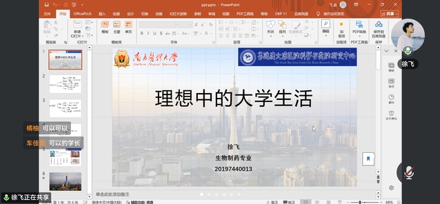为充分发挥优秀校友的榜样引领作用,助力在校学生明晰发展方向、优化个人学习和成长规划,近日,生命科学与技术学院线上举办了第六期“校友讲堂”。本次讲座邀请学院2023届生物制药专业优秀毕业生、现就读于南方医科大学粤港澳大湾区脑科学与类脑研究中心的徐飞主讲,2022-2024级同学踊跃参加。