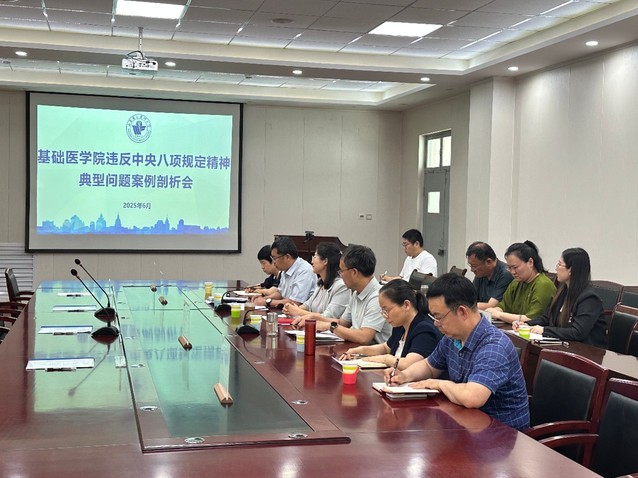 为深入贯彻中央八项规定精神学习教育,充分发挥典型案例警示教育作用,基础医学院党委于近日召开违反中央八项规定精神典型问题案例剖析会。会议由学院党委书记楚新艳主持,学院领导班子成员、各党支部书记等参会。
