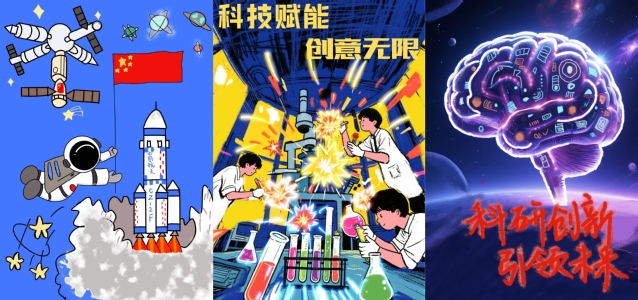 参赛选手紧扣科研创新主题,结合专业认知与美学理解,通过海报创作呈现别开生面的视觉表达。作品中既有创新思想碰撞的实验室意象、简洁灵动的机器人造型,亦有象征真理探索的机械脑设计,更不乏展现中国航空科研创新的空间站图景,每幅作品均蕴含独特创意与巧思。经综合评议,最终评选出一等奖1名、二等奖2名、三等奖2名。