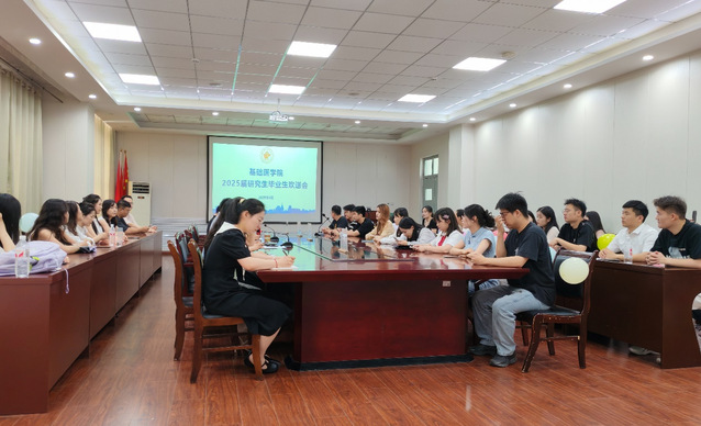 近日,基础医学院2025届研究生毕业欢送会在敏行楼21317会议室召开。学院党委书记楚新艳、副院长刘建明参会并发言,学院领导班子成员、导师代表、全体辅导员与毕业研究生参加活动。