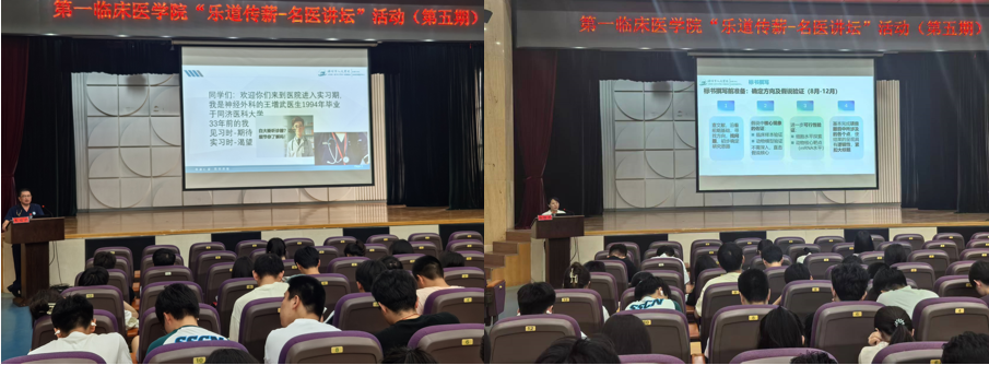 7月17日下午,第一临床医学院在第一附属医院礼堂举办第五期“乐道传薪 名医讲坛”活动。第一附属医院主任医师王增武、徐栋花担任主讲,学院教师和2022级临床医学专业学生参加。