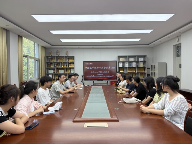 9月10日,口腔医学院在学院会议室组织召开转专业学生座谈会,迎接10名新转入同学。学院党总支书记胡勇、副书记张劲以及辅导员参加活动,与同学们进行了深入交流,旨在帮助大家尽快适应新专业、新环境,顺利完成学业过渡。